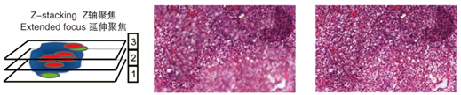 Extended focus延伸聚焦功能可实现多层图像融合,数码聚焦