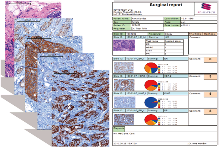 本软件将病人数字切片的实际扫描图像及测量数据以报告的形式打印出来,实现病理报告格式的数据化、标准化。