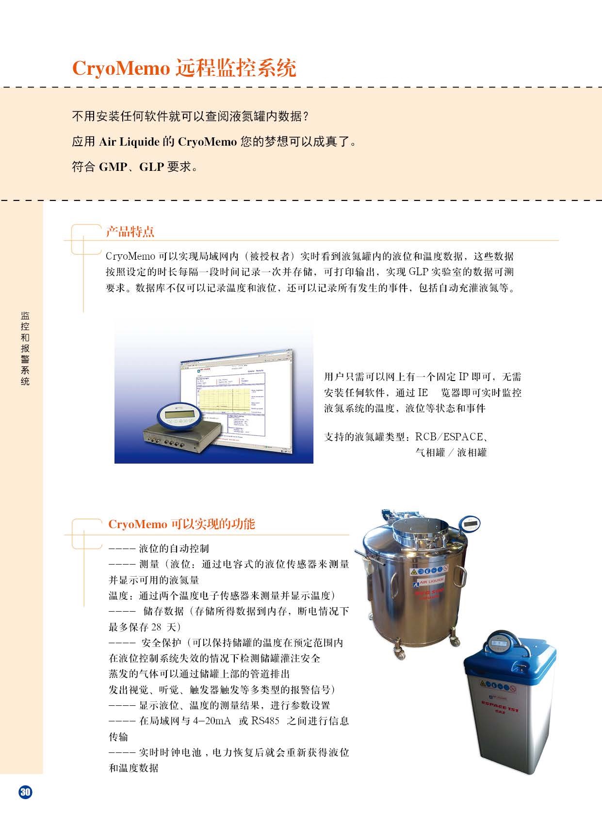 支持的液氮罐类型: ARPEGE,RCB,ESPACE ( 气相罐 / 液相罐 )