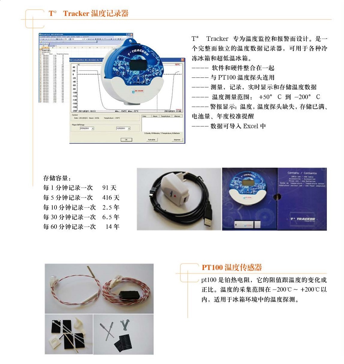 T° Tracker 专为温度监控和报警而设计。 是一个完整而独立的温度数据记录器, 可用于各种冷冻冰箱和超低温冰箱。
